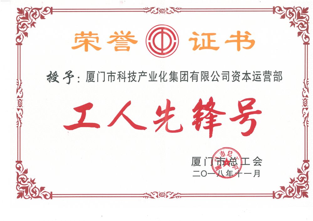 11月6日,廈門(mén)市總工會(huì)授予集團(tuán)資本運(yùn)營(yíng)部“工人先鋒號(hào)”榮譽(yù)稱號(hào)。
