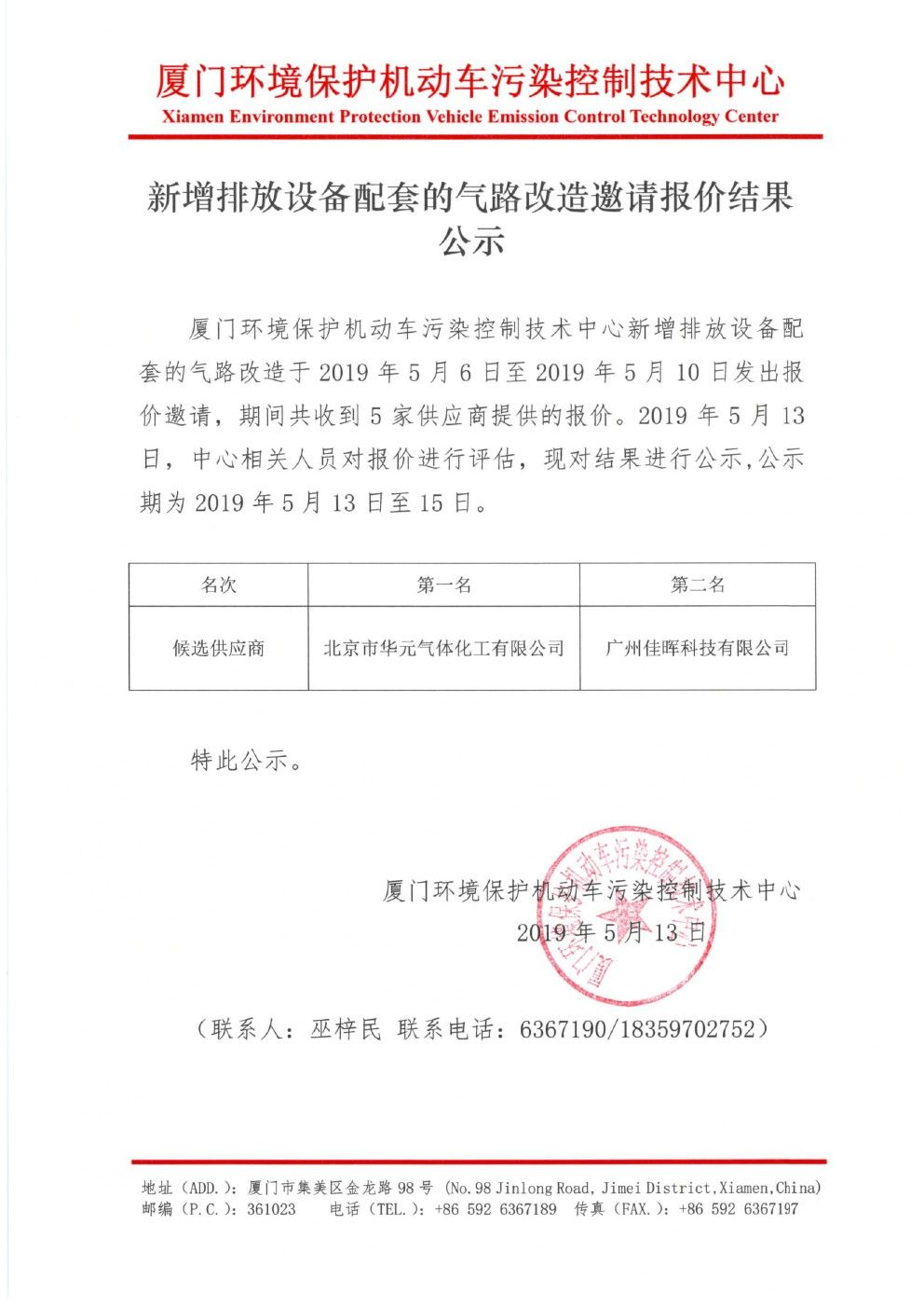 新增排放設(shè)備配套的氣路改造邀請(qǐng)報(bào)價(jià)結(jié)果公示 欄目:通知公告 來(lái)源:廈門(mén)科技產(chǎn)業(yè)化集團(tuán) 時(shí)間:2019-05-13 熱度:417