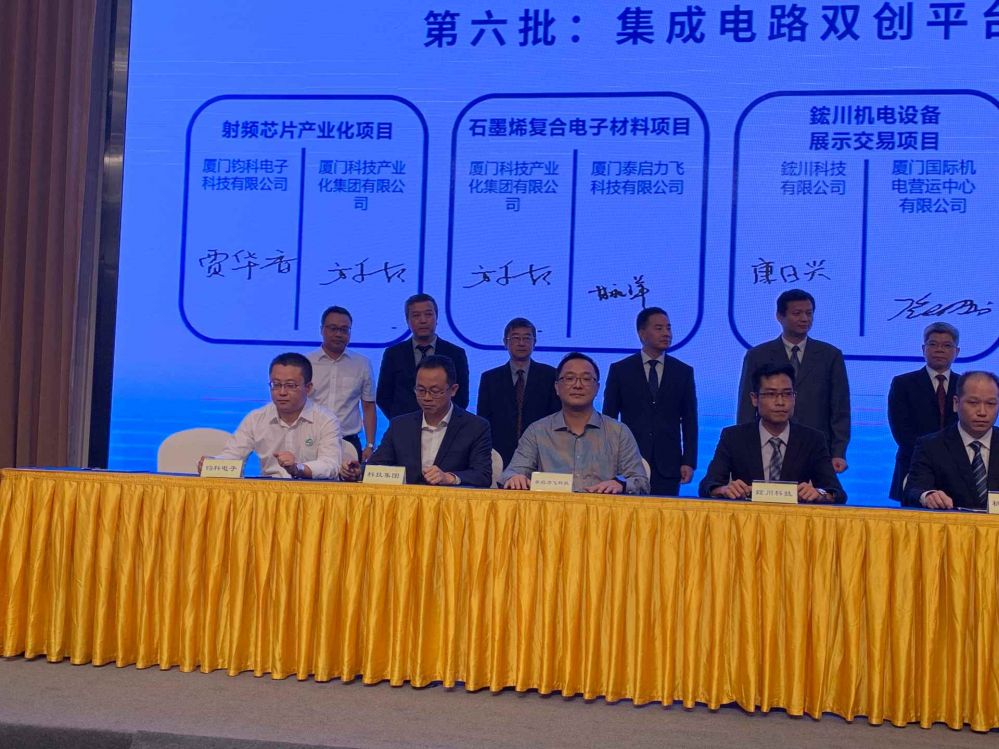 9月9日,由廈門市人民政府主辦,中國(福建)自貿(mào)試驗區(qū)廈門片區(qū)管委會、廈門市科技局、廈門市商務(wù)局承辦,廈門市臺港澳辦、廈門市集成電路行業(yè)協(xié)會、廈門自貿(mào)區(qū)等單位協(xié)辦的2019廈門自貿(mào)片區(qū)發(fā)展機遇說明會成功舉行。會上,科技集團與廈門鈞科電子科技有限公司、廈門泰啟力飛科技有限公司簽署了入駐集成電路萬翔基地合作框架協(xié)議。科技集團謝勇堅董事長作為簽約見證人出席,集團常務(wù)副總方永松、鈞科電子賈華香總經(jīng)理助理、泰啟力飛甘秋洋董事長作為簽約代表出席簽約活動。