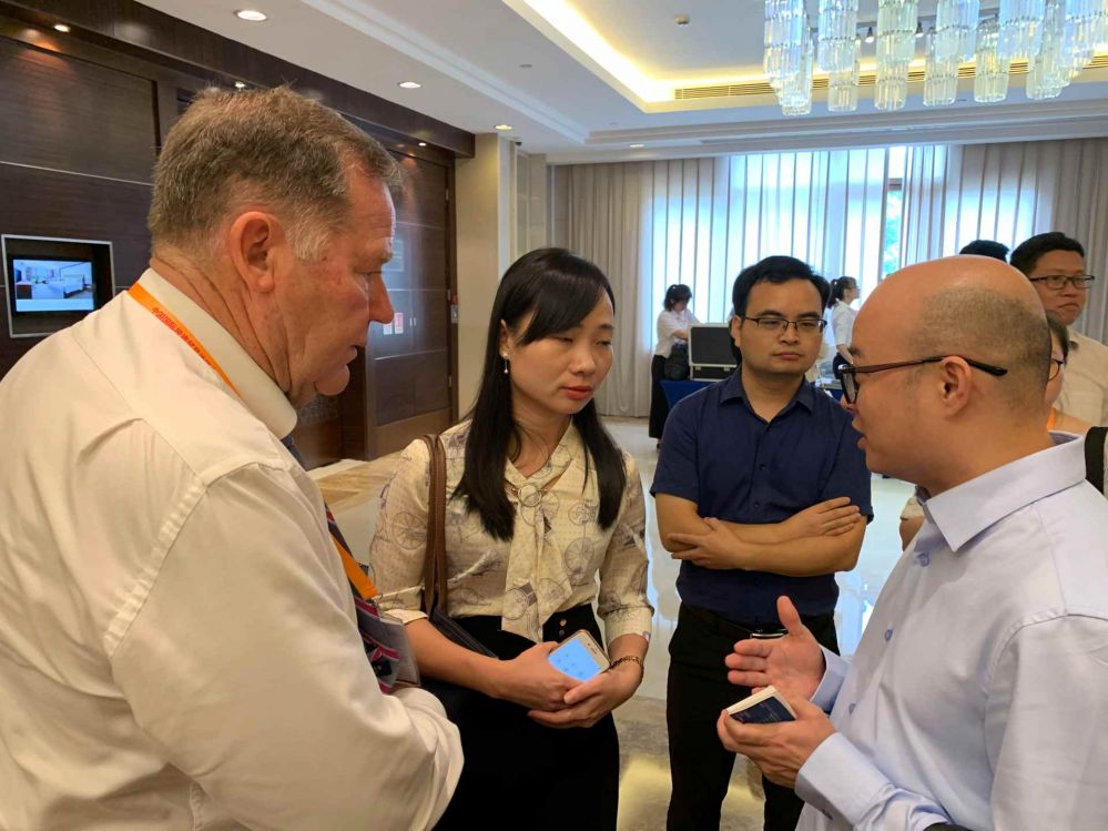 在廈門自貿(mào)片區(qū)推介環(huán)節(jié),科技集團IC服務(wù)平臺主任黃建寶做了題為“自貿(mào)創(chuàng)‘芯’——集成電路雙創(chuàng)平臺”精彩的主題演講,從產(chǎn)業(yè)環(huán)境、流片保稅試點、平臺建設(shè)、配套政策等四個方面進行推介。會后,澳大利亞籍客商專程與黃建寶主任交流了業(yè)務(wù)合作事宜,探討在半導(dǎo)體產(chǎn)業(yè)鏈開展有效合作。
