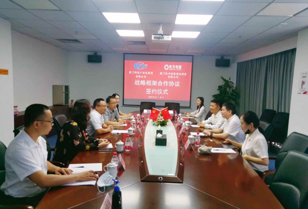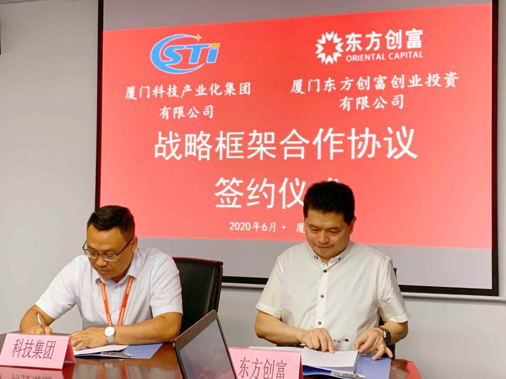 6月16日上午,廈門科技產(chǎn)業(yè)化集團有限公司(以下簡稱“科技集團”)與廈門東方創(chuàng)富創(chuàng)業(yè)投資有限公司(以下簡稱“東方創(chuàng)富”)就共同創(chuàng)立啟航創(chuàng)富【未來科技】投資基金在科技集團總部舉行戰(zhàn)略合作簽約儀式??萍技瘓F黨總支書記、董事長謝勇堅與東方創(chuàng)富董事長呂丹東代表雙方進行簽約,科技集團常務(wù)副總經(jīng)理方永松、副總經(jīng)理張蕾,東方創(chuàng)富副總經(jīng)理李榮源等共同出席簽約儀式。
