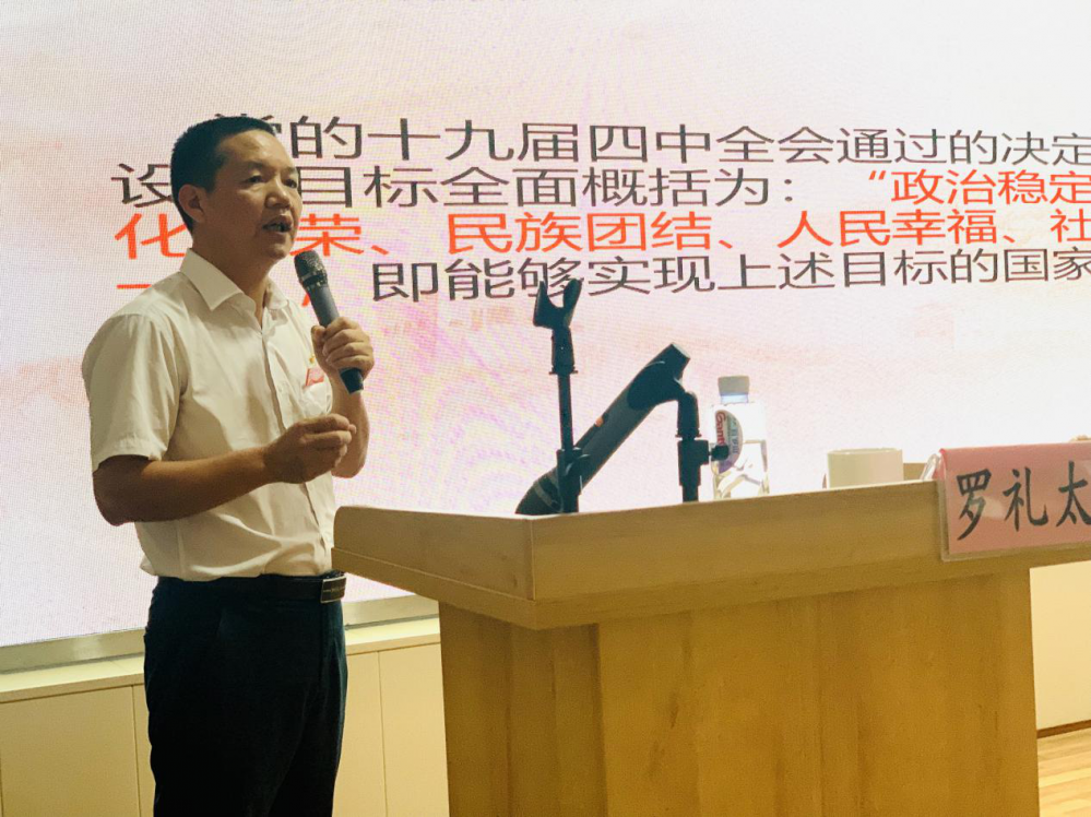 本次活動(dòng)邀請(qǐng)廈門大學(xué)馬克思主義學(xué)院羅禮太教授進(jìn)行授課。講座中羅教授將習(xí)近平新時(shí)代中國特色社會(huì)主義思想從形成背景、主要特色、歷史貢獻(xiàn)、理論定位、學(xué)習(xí)貫徹等問題進(jìn)行了比較系統(tǒng)的解讀。該講座進(jìn)一步為黨員干部學(xué)習(xí)習(xí)近平新時(shí)代中國特色社會(huì)主義思想提供了經(jīng)驗(yàn)探索和理論素材。