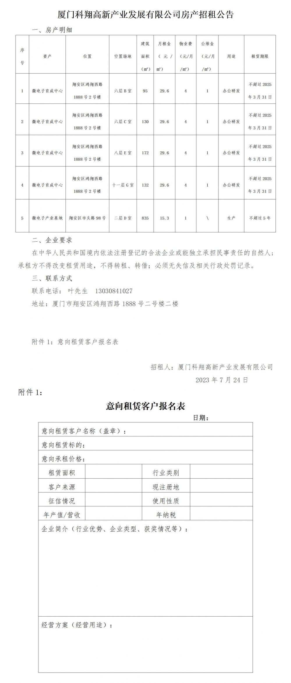 廈門科翔高新產(chǎn)業(yè)發(fā)展有限公司房產(chǎn)招租公告 欄目:通知公告 來源:廈門科技產(chǎn)業(yè)化集團(tuán) 時(shí)間:2023-08-02 熱度:185 廈門科翔高新產(chǎn)業(yè)發(fā)展有限公司房產(chǎn)招租公告2023.7.24.doc