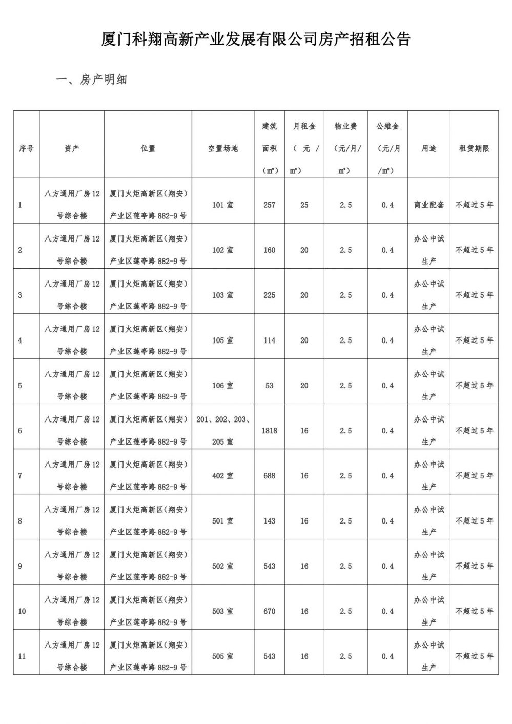 廈門科翔高新產(chǎn)業(yè)發(fā)展有限公司房產(chǎn)招租公告