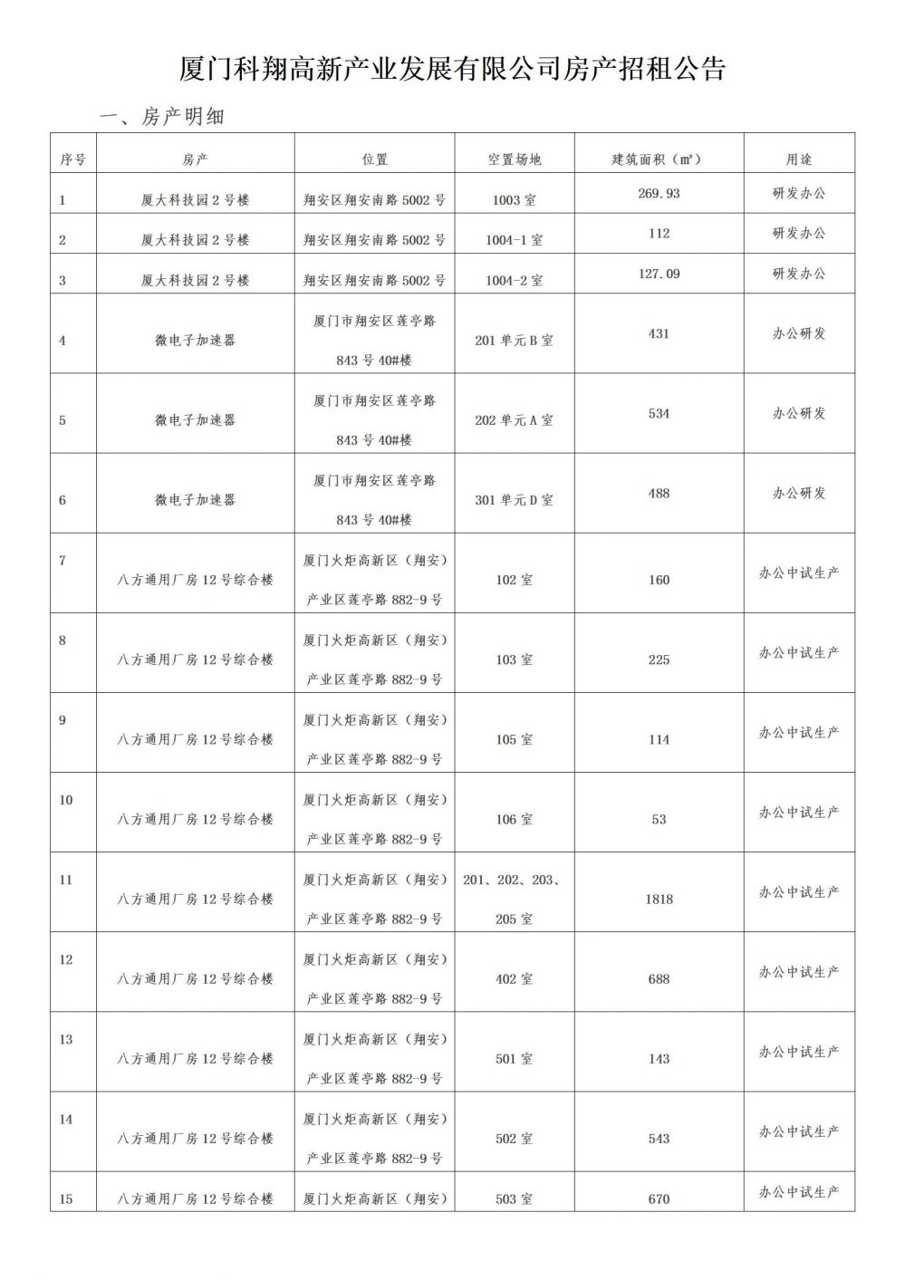 廈門科翔高新產(chǎn)業(yè)發(fā)展有限公司房產(chǎn)招租公告