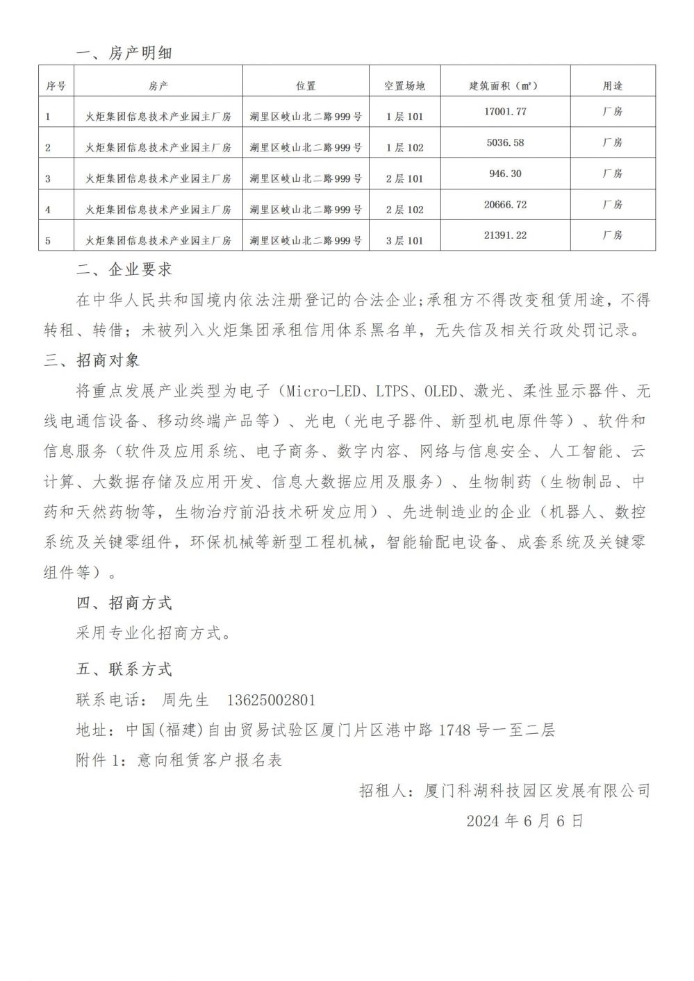 廈門科湖科技園區(qū)發(fā)展有限公司房產(chǎn)招租公告 欄目:通知公告 來源:廈門科技產(chǎn)業(yè)化集團 時間:2024-06-07 熱度:102 廈門科湖招租公告 2024.06.06.doc