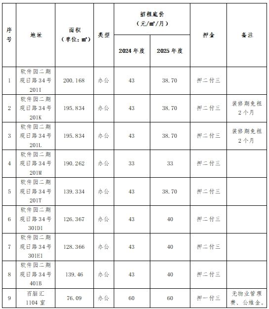 3、承租人資質要求:在中華人民共和國境內依法注冊登記的合法企業(yè);承租方不得改變租賃用途,不得轉租、轉借;未被列入火炬集團承租信用體系黑名單,無失信及相關行政處罰記錄。